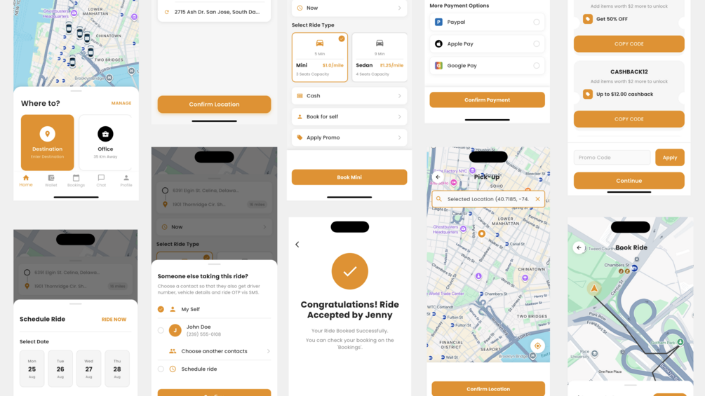 Whether you're creating a taxi service, ride-sharing app, cab booking platform, or mobility startup MVP, this UI kit gives you everything you need to launch in days instead of weeks.